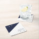 Modern Minimalist Navy Blue White Monogram Wedding Square Paper Coaster
