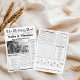 Celebrate the story of your special day with a custom wedding newspaper! Packed with love, laughter, and personalised touches, this unique keepsake shares your journey as a couple, highlights your wedding party, and delights guests with fun details. From a heartfelt "thank you" message and your love story to event schedules, trivia,