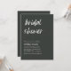 This invitation embodies the essence of modern minimalism, blending clean lines with a touch of playfulness. The standout feature is the vibrant white handwriting font that spells out "Bridal Shower," injecting a sense of excitement and modernity into the design. The remaining text is presented in crisp white block fonts, ensuring clarity and a timeless appeal that perfectly complements the invitation's sleek and minimalistic aesthetic.