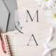 Modern Minimalist Black Wedding Invitation Vellum Overlay. Features monogram typography and minimal graphic design.