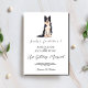 A minimalist wedding invitation featuring a charming illustration of the couple’s dog, elegant typography, and a clean layout. Perfect for pet lovers seeking a personal and sophisticated touch for their special day.