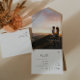 This Modern Minimalist Photo all in one invitation is perfect for your classy boho wedding. Its simple, unique abstract design accompanied by a contemporary minimal script and white and black typography gives this product a feel of elegant formal luxury while staying simplistic, chic bohemian. Keep it as is, or choose to personalise it with artwork or graphics of your choice. You can also look to other products within this collection to bring your whole wedding together!