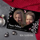 Simple trendy minimal elegant Happy Holidays silver real foil handwritten script custom photo black winter holidays Christmas holiday card with delicate pink grey holly berry branches. Easy to personalise with your photo (heart shape), text, and signature.