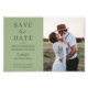 Trendy elegant budget wedding save the date announcement photo budget card (NO ENVELOPES INCLUDED) with modern typography script and your custom image over a sage green simple background. +++++++++++ Easy to personalise with your engagement picture and details! ++++++++++ You have the possibility to change the colours of the script to match your wedding colour palette. +++++++++++++
