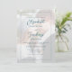 This simple, minimalist wedding invitation features the text in elegant teal blue script and sans serif typefaces, framed by a thin teal rectangle. Easily replace the sample image with your own photo of the couple. A white screen over the photo helps make the text stand out. The same photo appears without a screen on the reverse side.