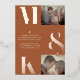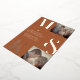 Modern minimalist wedding design is all about simplicity and elegance. It emphasizes clean lines, neutral palettes, and a focus on the essentials. This design in trendy burnt orange colour uses minimalist style typography with customisable couple photos and bold monograms. Whether you're planning an intimate ceremony or a large reception, modern minimalist design is a perfect choice for couples who want to create a timeless and sophisticated atmosphere for their wedding celebration.