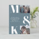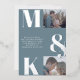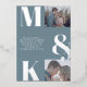 Modern minimalist wedding design is all about simplicity and elegance. It emphasizes clean lines, neutral palettes, and a focus on the essentials. This design in trendy dusty blue colour uses minimalist style typography with customisable couple photos and bold monograms. Whether you're planning an intimate ceremony or a large reception, modern minimalist design is a perfect choice for couples who want to create a timeless and sophisticated atmosphere for their wedding celebration.