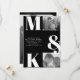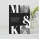 Modern minimalist wedding design is all about simplicity and elegance. It emphasizes clean lines, neutral palettes, and a focus on the essentials. This design in trendy black colour uses minimalist style typography with customisable couple photos and bold monograms. Whether you're planning an intimate ceremony or a large reception, modern minimalist design is a perfect choice for couples who want to create a timeless and sophisticated atmosphere for their wedding celebration.