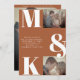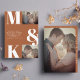 Modern minimalist wedding design is all about simplicity and elegance. It emphasizes clean lines, neutral palettes, and a focus on the essentials. This design in trendy burnt orange colour uses minimalist style typography with customisable couple photos and bold monograms. Whether you're planning an intimate ceremony or a large reception, modern minimalist design is a perfect choice for couples who want to create a timeless and sophisticated atmosphere for their wedding celebration.