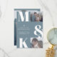 Modern minimalist wedding design is all about simplicity and elegance. It emphasizes clean lines, neutral palettes, and a focus on the essentials. This design in trendy dusty blue colour uses minimalist style typography with customisable couple photos and bold monograms. Whether you're planning an intimate ceremony or a large reception, modern minimalist design is a perfect choice for couples who want to create a timeless and sophisticated atmosphere for their wedding celebration.