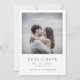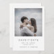 Modern minimalist typography design in colour editable charcoal black, framed couple's photo with fog filter, simple and elegant. Great photo save the date cards for modern wedding and other events.