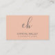 Elegant professional card features initials of hair stylist, pink rose gold colours and script typography.