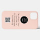 Elegant, modern, minimalist, Logo, QR Code, stylish, simple pink iPhone 13 case. Perfect for business. Personalise with name, website and logo.