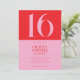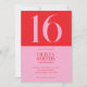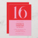 Modern Minimalist Pink Red 16th Birthday Invitation