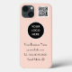 Elegant, modern, minimalist, Logo, QR Code, stylish, simple pink iPhone 13 case. Perfect for business. Personalise with name, website and logo.