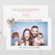 This minimalist holiday card is perfect to send this Holiday season! It features one horizontal photo, on the simple white background, ''Happy Holidays'' wishes in modern font and your family name and year in handwritten script in lovely shades of red and blue which match the colours the watercolor plaid bow in the corner. The bow repeats on the revese together with your custom greetings. Customise this design by clicking on the ''Personalise'' button.