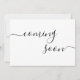 Pregnancy announcement card with modern minimalist design. Features elegant script typography. Personalise all text in this announcement card template.