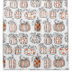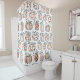 A sleek and modern seamless pattern shower curtain featuring abstract orange pumpkins and dotted shapes on a black background. The design combines Halloween-inspired motifs with minimalist geometric styling.