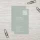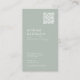 Elegant, modern business card with your Logo and QR code prominently displayed on muted pastel colours alongside your contact information, including social media handle in a stylish script and timeless typography design. This is the dusty green version.