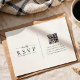 This RSVP card has a clean, modern design with a simple two-column layout. One side features elegant serif and script fonts, while the other side includes a QR code with minimal lowercase text. The use of black and white, along with plenty of white space, gives it a stylish, minimalist look that feels both formal and contemporary.