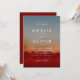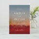 Simple and modern wedding invitation design featuring deep red, earthy orange and dusty blue abstract background. Perfect for fall and winter weddings.