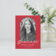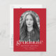 Invite guests to your graduation party with our chic photo graduation party invites. The stylish graduation party invitation postcards feature the graduate's photo framed by a red arch-shaped frame. "Graduate" is displayed in white modern italicized lettering. Personalize the front of the trendy graduation party invitation by adding the graduate's name, school name, and graduation year. The postcard invite reverses to display your return address and graduation party details.