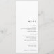 Modern and understated, this minimalist black and white wedding menu is designed for an effortlessly elegant table setting. Each card features a clean, single-course layout — perfect for placing one at every guest’s seat. The text is thoughtfully aligned towards the bottom, leaving open space at the top for adding name tags, wax seals, or decorative accents. Simple yet refined, this design complements any wedding style with its balanced typography and timeless sophistication.