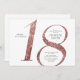 Modern minimalist 18th birthday party invitation features stylish faux rose gold glitter number 18 and your party details in classic serif font, simple and elegant, great surprise birthday invitation for men and women.