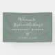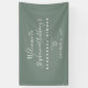 Modern minimalist sage green and white with heart rehearsal dinner welcome banner. Simple and elegant.