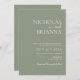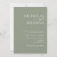 Modern Minimalist Sage Green Wedding Invitation. Monogram at the back.