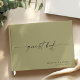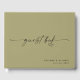 Preserve the heartfelt messages from your wedding guests in this modern and minimalist guest book. The elegant script "Guest Book" is paired with a subtle heart icon against a sage background, offering a sophisticated touch. This design is perfect for couples seeking a clean and refined aesthetic for their wedding day. The customizable area below allows for the couple's names and wedding date to be elegantly displayed, making it a unique reflection of your union. Your guests will love leaving their notes and well-wishes in this beautiful, understated keepsake.
