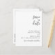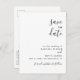 A modern minimalist script design save the date postcard makes announcing your wedding easy and elegant. Black script font and clean modern text create a simple and clean look.
