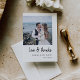 These elegant, minimalist wedding thank you cards feature modern script typography and clean, sans serif text for a simple and stylish black and white design you will love. There is room for two of your favourite wedding photos.