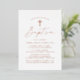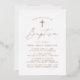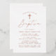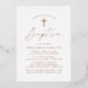 The simple baptism invitations feature a rose gold foil calligraphy script with a white background for a design that is perfect for modern baby baptisms. Personalise the elegant baptism invitations with your child's name and religious event details below. The back of the rose gold foil baptism invitation provides space for additional text and photos.