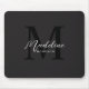 Modern Minimalist Script Black Monogram Mouse Pad