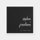 These elegant, minimalist wedding napkins feature modern script typography and clean, sans serif text for a simple and stylish black design you will love.