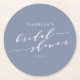 Modern Minimalist Script Blue Bridal Shower Custom Round Paper Coaster