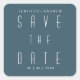Modern Minimalist Script Blue Save The Date Square Sticker