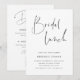 Invite guests to celebrate the bride to be with these modern and minimal double sided bridal shower lunch invitations by Redwood & Vine Design Co in classic black and white. Simple design features "bridal lunch" in casual handwritten script, with your event details beneath in modern soft ash black lettering. Customize the back with additional details; shown with a recipe request, unwrapped gift (display shower) request, and a registry QR code.