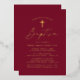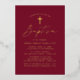 The simple baptism invitations feature a casual gold foil calligraphy script with a burgundy background for a design that is perfect for modern baby baptisms. Personalise the elegant baptism invitations with your child's name and religious event details below. The back of the burgundy and gold foil baptism invitation provides space for additional text and photos.