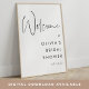 Welcome guests to your bridal shower, baby shower, engagement party, wedding, or special event with this elegant minimal sign, available as a digital download or professionally printed. Design features "welcome to [event name]" with the date beneath, in soft black handwritten script and sans serif lettering on a crisp white background. Coordinates with our Minimalist Script bridal and baby shower collections.