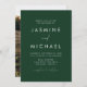 Simple, elegant wedding invitations featuring a white, handwritten script mixed with modern lettering against a hunter-green background. Personalise the minimalist wedding invitation with your name and wedding details. The invite reverses to display your full-bleed vertical engagement photo. The chic hunter green wedding invitations are the perfect choice for modern weddings.