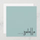 This chic note card features your name in a handwritten script calligraphy "a note from" on a dusty blue green background. The typography is stylishly placed in the lower right corner.