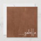 This chic note card features your name in a handwritten script calligraphy "a note from" on a distressed cocoa background. The typography is stylishly placed in the lower right corner. The back of the note card is white.