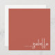 This chic note card features your name in a handwritten white script calligraphy "a note from" on a terracotta background. The typography is stylishly placed in the lower right corner.