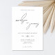 Black and white wedding invitation featuring custom names in minimalist script calligraphy and your wedding day details in simple modern typography.