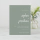These elegant, minimalist wedding invitations feature white, modern script typography and clean, sans serif text for a simple and stylish sage green design you will love.