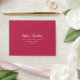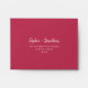 These elegant, minimalist wedding RSVP envelopes feature white modern script typography and clean, sans serif text on a magenta red background for a simple and stylish design you will love. Your pre-printed return address goes onto the front.