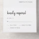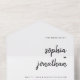 These elegant, minimalist all-in-one wedding invitations feature modern script typography and clean, sans serif text for a simple and stylish black and white design you will love. Detachable RSVP response card is attached.