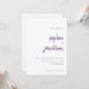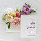 These elegant, minimalist wedding invitations feature purple modern script typography and clean, sans serif text on a white background for a simple and stylish colourful design you will love.